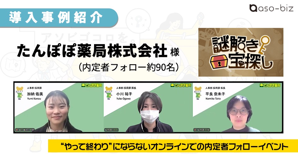 対面とオンラインの併用で内定者フォロー!謎解き宝探しオンライン活用事例:たんぽぽ薬局株式会社様